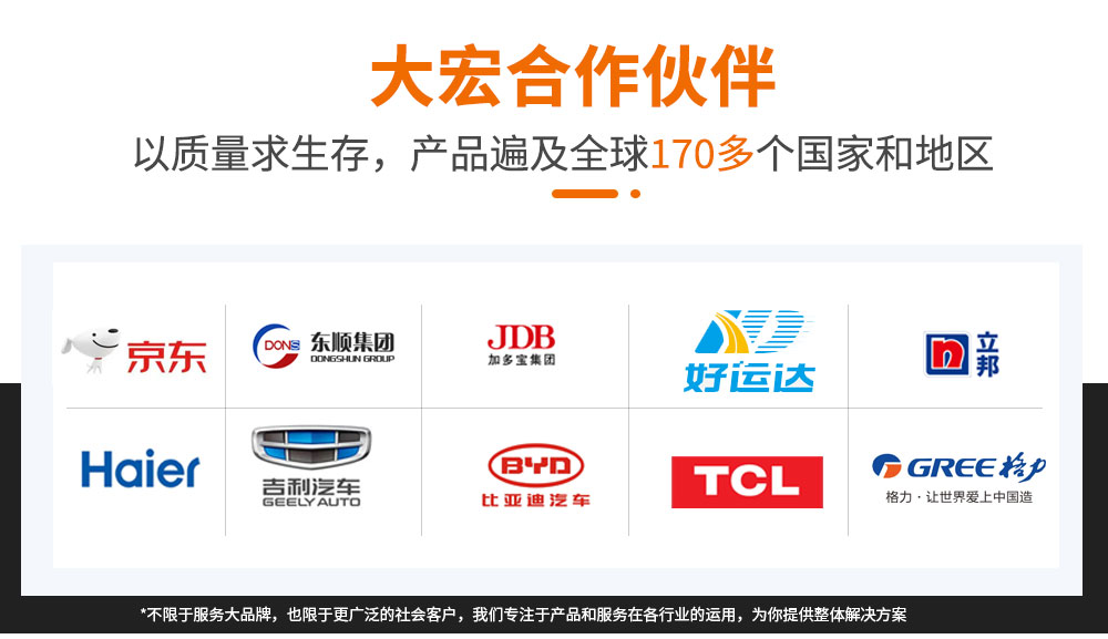 “大宏智能”以“穩定、高效、節省”為理念進行包裝設備的研發、生產,營銷網絡遍布全球,產品遠銷歐美、東亞、東南亞、非洲等100多個國家和地區。