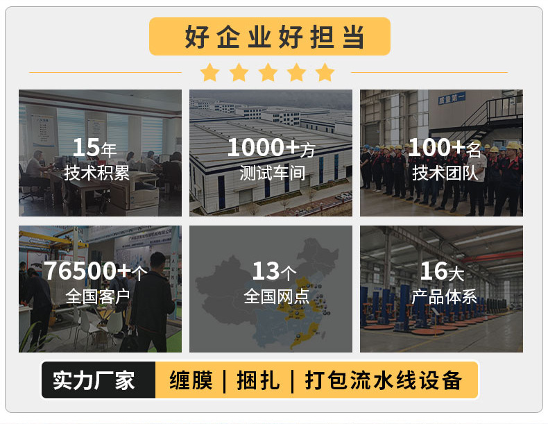 和高校建立了長期合作關系,擁有發明專利12項、實用新型專利32項、計算機軟件著作權登記證書18項,已研制成功后道包裝用10大系列、22個品類的包裝設備,包括自動智能纏繞機系列、行業定制纏繞機系列、開箱封箱打包機系列、輸送流水線等,并推出多種組